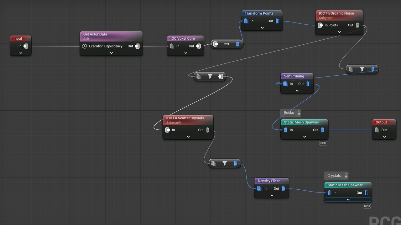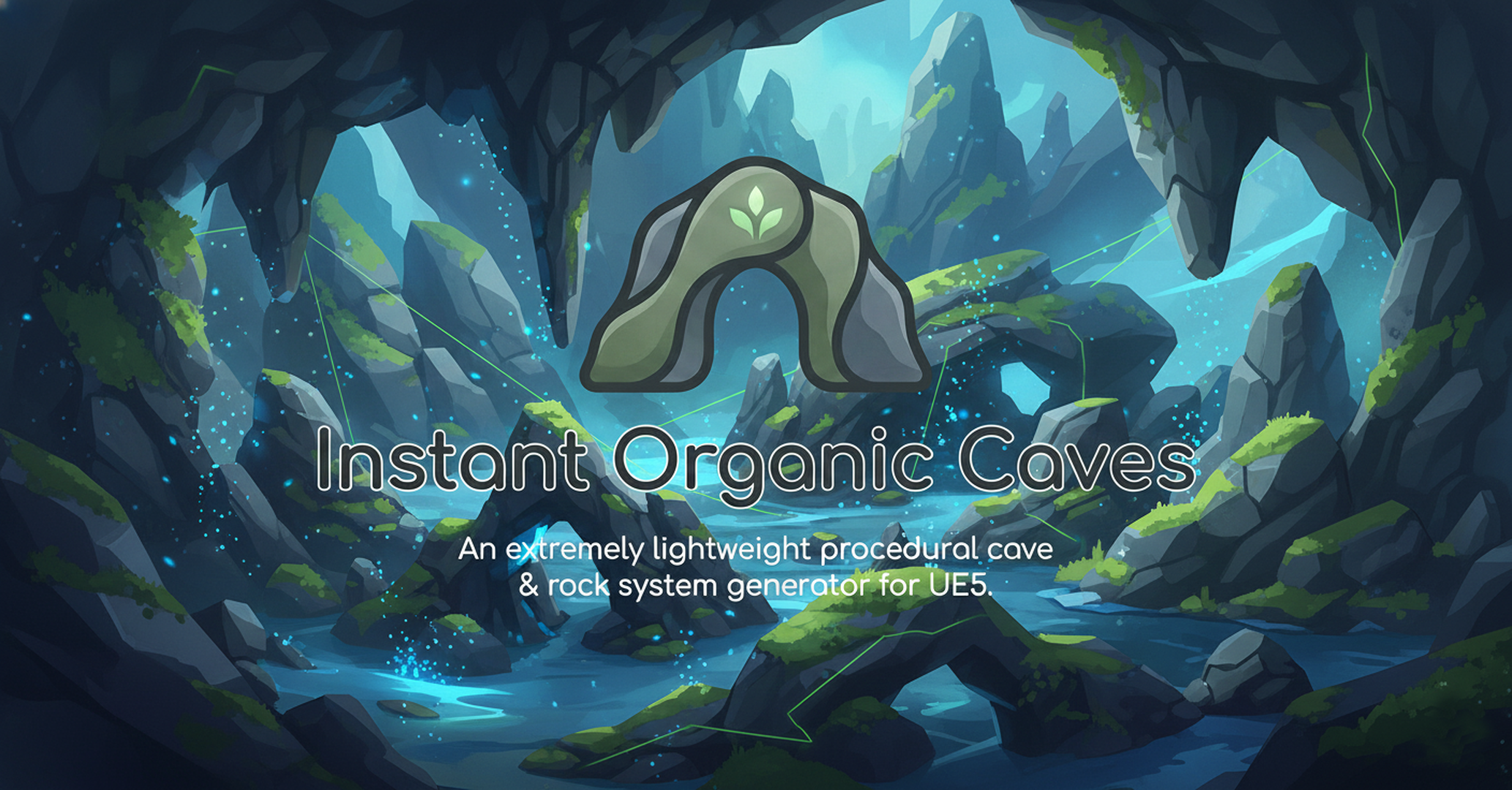 Instant Organic Caves (IOC) is a small plugin designed to generate massive, seamless, and organic cave and/or rock systems procedurally at runtime. Unlike traditional marketplace assets that rely on static meshes or Blueprint construction scripts, IOC utilizes a "Metal C++" approach. It builds geometry directly using Unreal's FDynamicMesh3 core math libraries, bypassing overhead from the Blueprint VM and intermediate wrapper libraries. The result is a system that can generate infinite, seamless, Nanite-enabled environments suitable for high-fidelity production.
