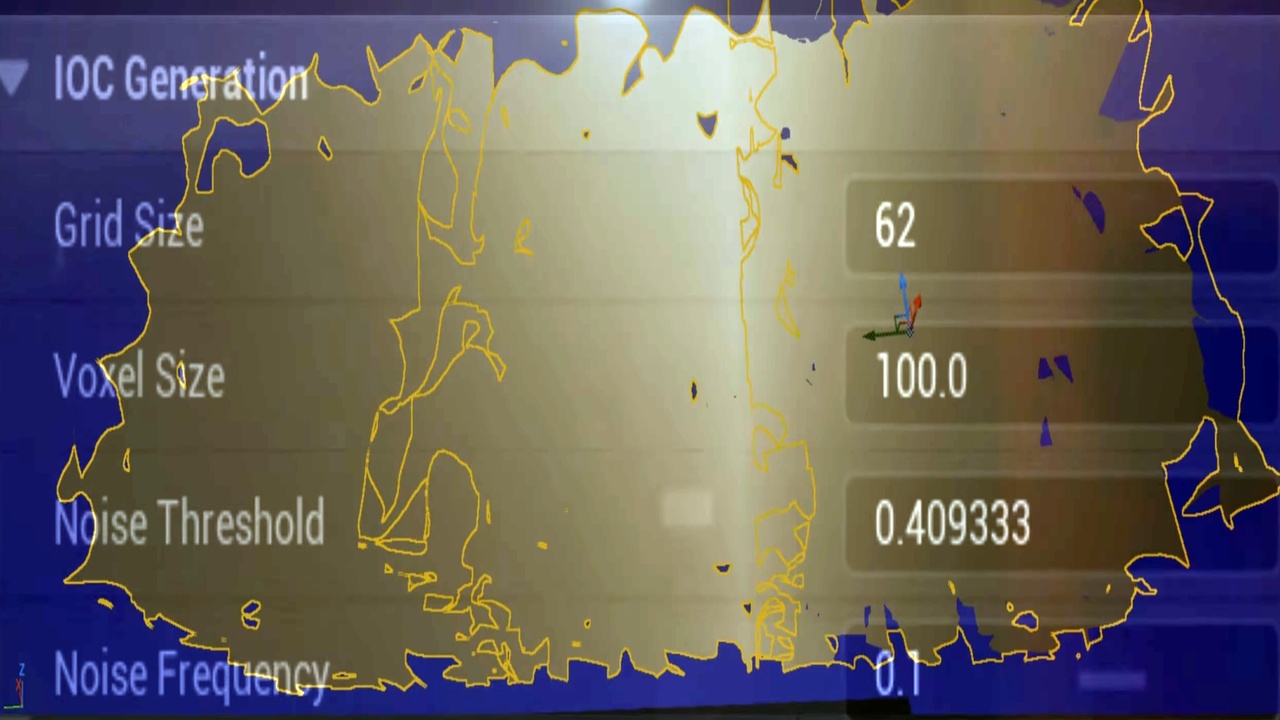 *Organic Smoothing:** Implements custom, stable Laplacian Smoothing to convert blocky voxel grids into smooth, eroded cavern walls.