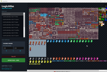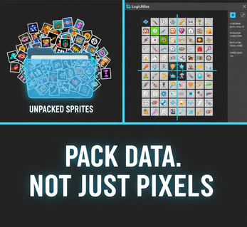 LogicAtlas is a native Windows utility that generates texture atlases with embedded logic. It doesn't just combine images; it lets you visually set pivot points and collision centers before you export.